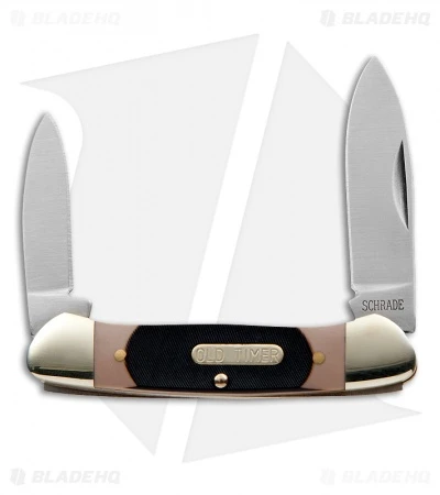 This Old Timer classic small canoe pocket knife is an American tradition. Often found in many of our grandfather pockets, this pocket knife features a satin finished stainless steel spear point blade on one end and a pen blade on the other end with slip joint construction. The canoe-shaped handle features polymer composite scales, brass liners, polished nickel silver bolsters, and brass rivet construction.