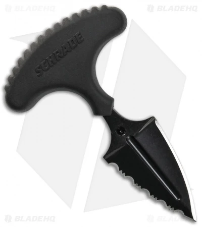 The Schrade SCHF50 is an ultra-compact push dagger designed for easy carry and concealment. It features a double-edged 9Cr18MoV stainless steel blade with a black finish and serrations on one side. This small dagger makes a great self-defense implement and a backup blade in a pinch. Includes a molded ABS neck sheath with a carabiner clip attachment.